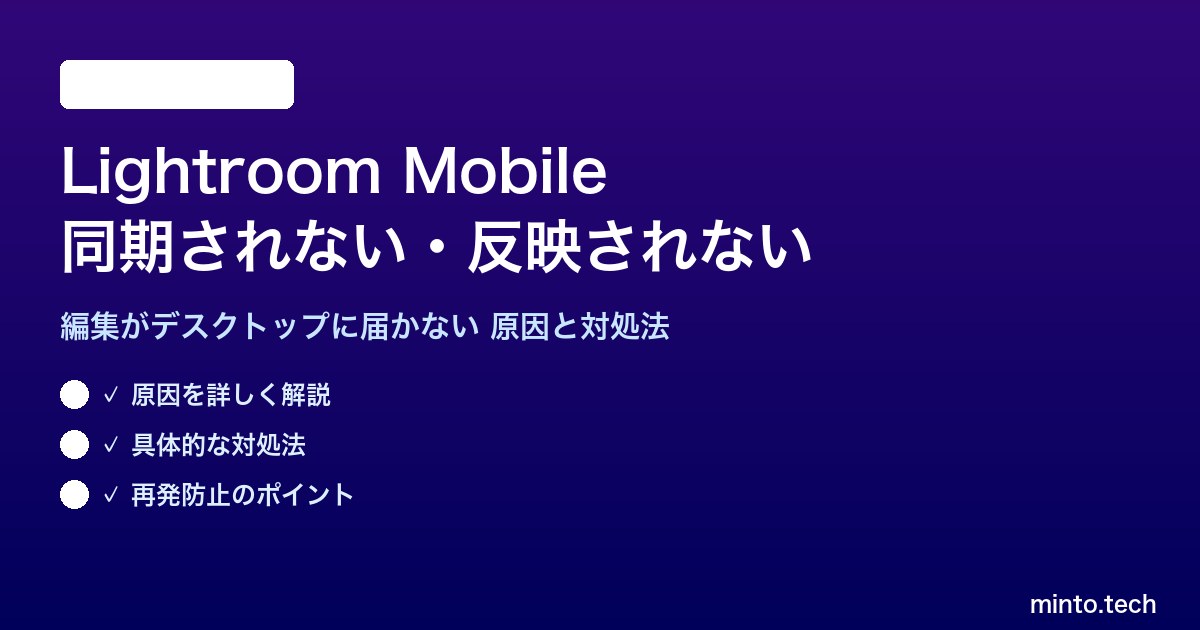 【2026年最新版】Adobe Lightroom Mobile(スマホ版)が同期されない・編集内容がデスクトップに反映されない原因と対処法【完全ガイド】