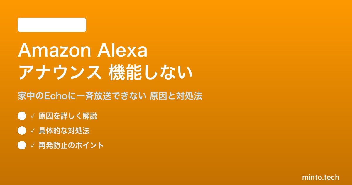 Amazon Alexaのアナウンス機能が動作しない問題の多くは、以下の確認と対処で解決できます: