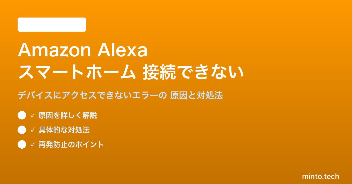 Home / Amazon / 【2026年最新版】Amazon AlexaのスマートホームデバイスにアクセスできないAlexa・スマートホームの接続エラーが直らない原因と対処法【完全ガイド】