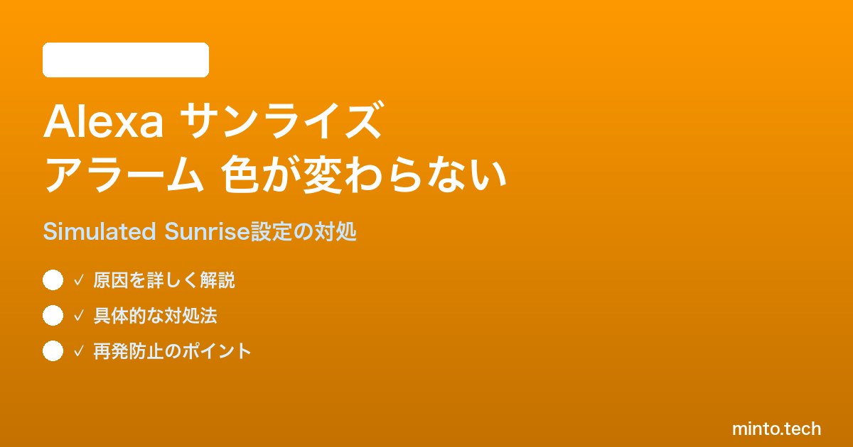 サンライズアラームは対応デバイスさえ揃えれば安定して動作する機能です。対応していない格安ライトを使っている場合は、Echo Glowや対応ブランドのカラーライトへの切り替えが根本解決への最短ルートとなります。