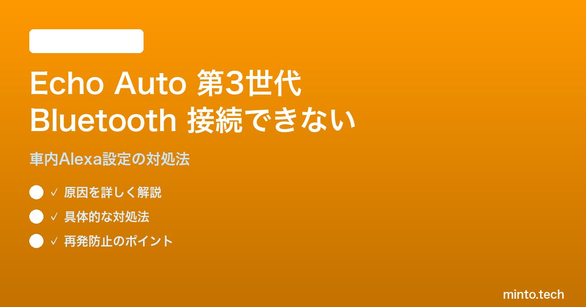 Echo Auto(第3世代)がスマートフォンと接続できない問題の主な原因と対処法をまとめます。