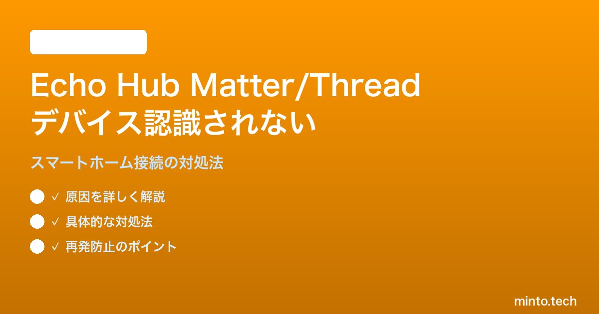Echo HubのMatter/Thread対応デバイスが認識されない問題は、Echo Hubのソフトウェアが最新でない・Thread Border Routerが正常動作していない・デバイスのペアリング手順が正しくないといった原因が多いです。