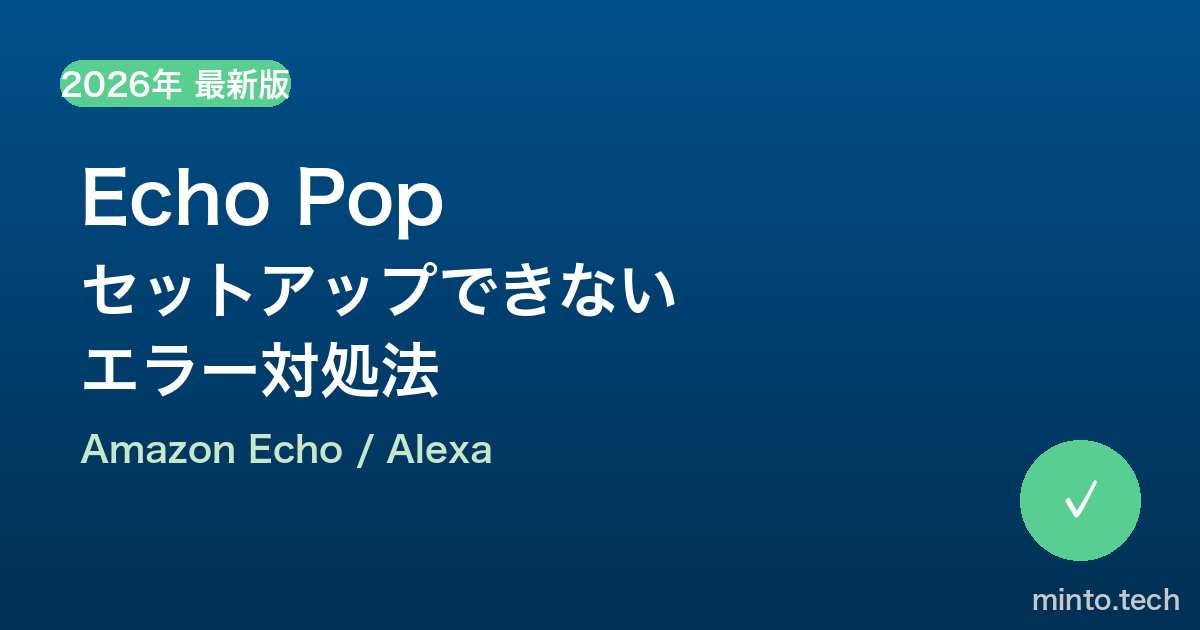 Amazon Echo Popのセットアップが失敗する場合、まず確認すべきはWi-Fiの周波数帯(2.4GHz)とAlexaアプリのバージョンです。これだけで多くのケースが解決します。