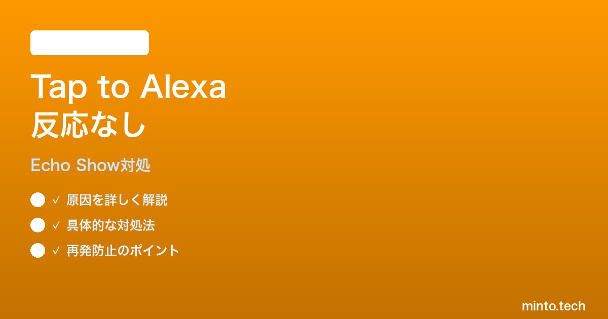 原因は、(1)アクセシビリティ設定でTap to Alexa自体がオフになっている、(2)画面ロック中で操作が無効化されている、(3)ファームウェアが古いまたは破損、(4)Alexaアプリ側のデバイス情報がズレている、(5)本体の一時的な不具合、など多岐にわたります。本記事では、初心者の方でも順を追って実施できる対処法を、簡単な順から本体リセットまで網羅的に解説します。所要時間は5〜30分です。本体リセットは最終手段なので、その前段階の対処法をすべて試してから検討してください。