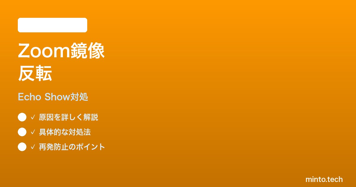 Echo Show 8でZoom通話する際の鏡像問題は、Zoomアプリの「マイビデオを反転」設定とEcho Show 8側のカメラ仕様の二重反転が主な原因です。最初に試すべきは「マイビデオを反転」のオン・オフ切り替えで、これだけで多くのケースが解決します。
