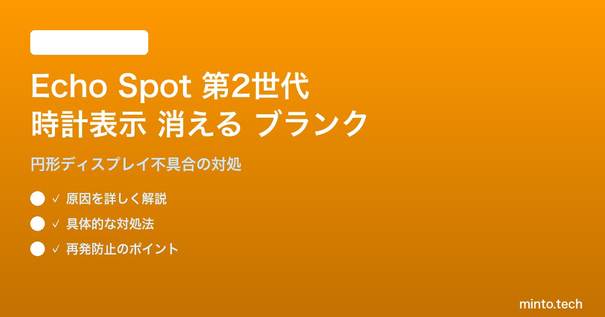 本記事では、Echo Spot第2世代の画面・時計表示が消える原因をすべて解説し、確認すべき設定と対処手順を網羅します。