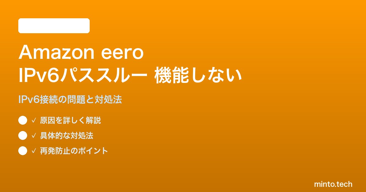 重要なのは、eeroは独自のIPv6スタックを持つルーターであり、他社ルーターと同様に「パススルー」という単純な透過処理とは異なる実装になっている点です。この仕組みの理解が、トラブル解決の鍵になります。