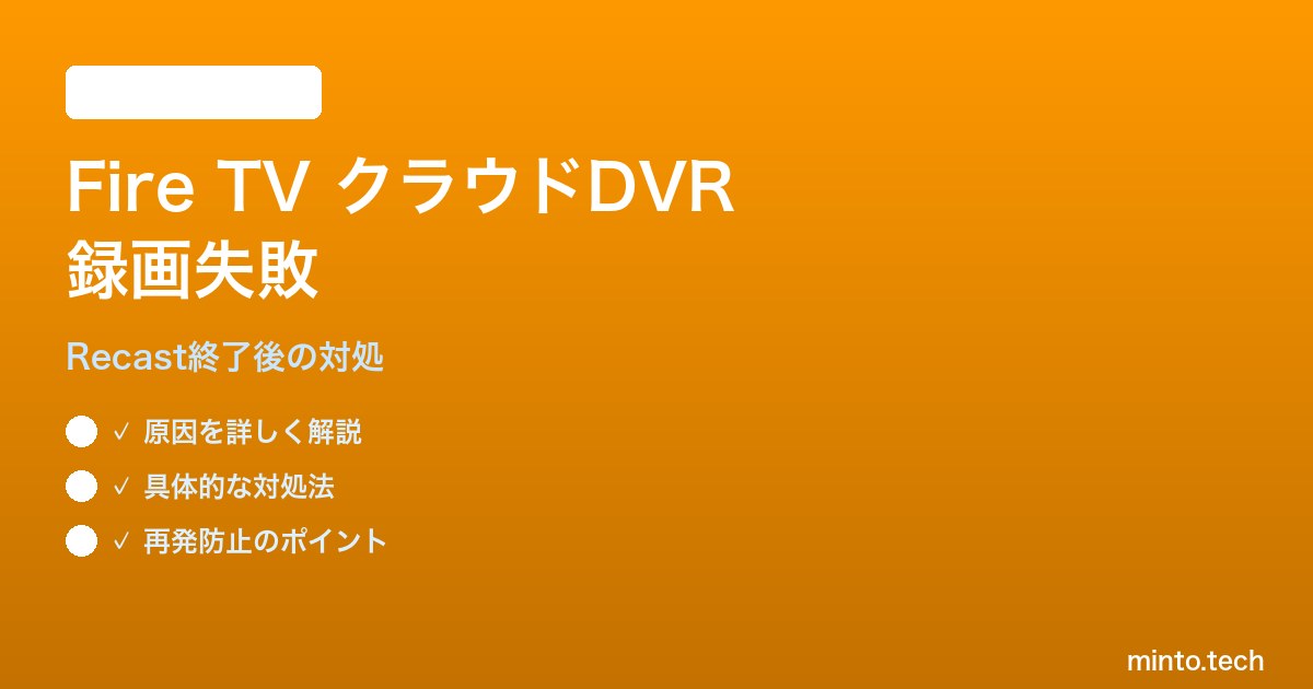 この記事では、Fire TVエコシステムでクラウドDVR録画が失敗する各種原因を整理し、Recast利用者の代替サービス選定、米国外(日本など)からの利用可否、容量プラン別の録画上限、そして「なぜ日本で録画番組の多くが利用できないのか」という根本的な地域制限まで、2026年最新事情で解説します。