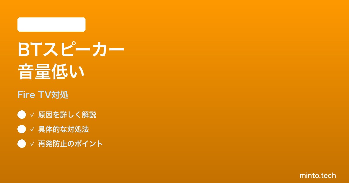 もっとも頻度が高い原因です。Fire TV側のリモコンで音量を上げても、Bluetoothスピーカー本体側の音量と同期されていないケースが多発しています。