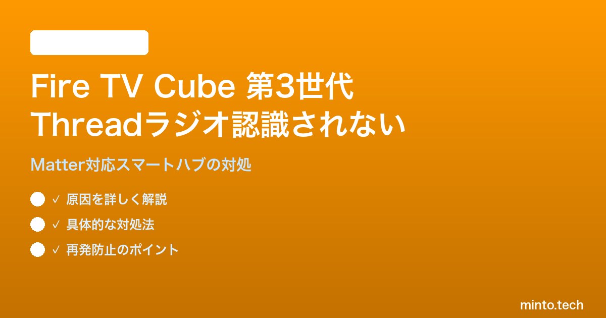 Amazon Fire TV Cube第3世代のThreadラジオが認識されない問題は、設定の有効化、Matterデバイスの正しい追加手順、複数ボーダールーター環境での競合解消、ファームウェア更新といった複数のレイヤーが絡み合います。本記事で紹介した対処法のうち、まずはAlexaアプリで「スマートホームハブ」機能が有効化されているかを確認し、続いてMatterデバイスの追加手順を見直してください。