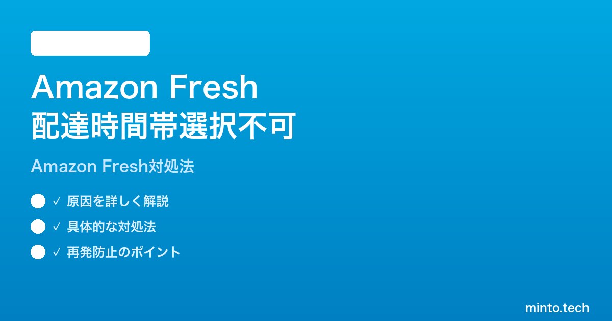 本記事では、Amazon Freshで配達時間帯が選択できない・表示されない原因を体系的に解説し、すぐに試せる対処法を順を追って説明します。配達エリア外の確認方法、Prime会員資格の確認、在庫状況による影響など、あらゆる角度から問題を掘り下げています。