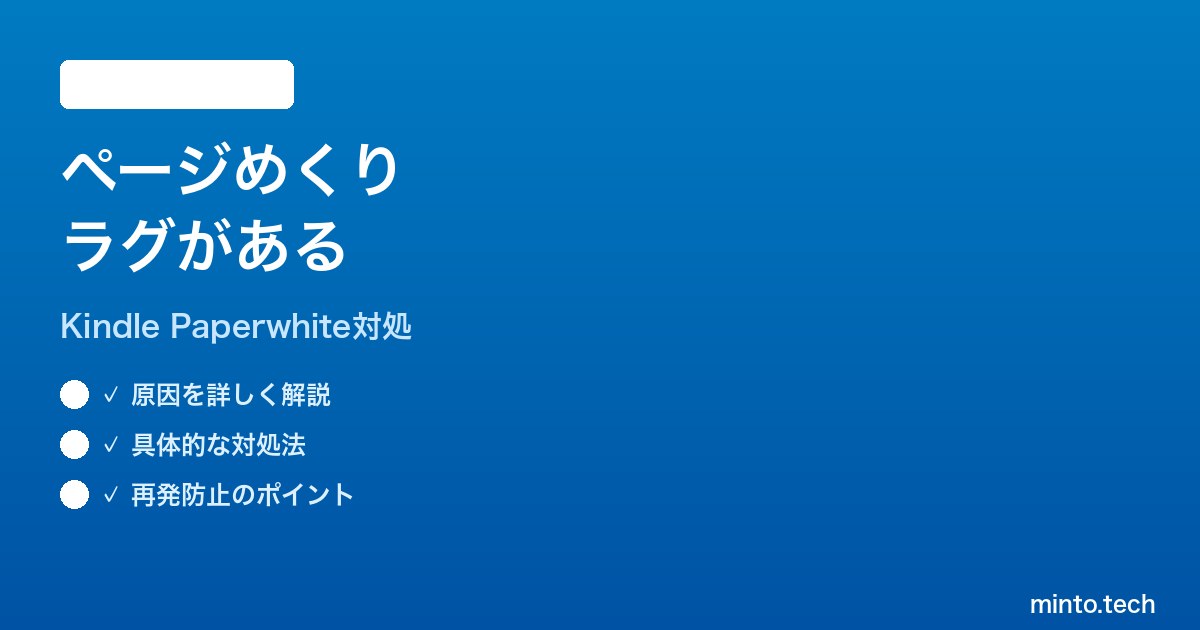 本記事では、Kindle Paperwhite(第11世代・第12世代)のページめくりラグ問題について、電子インク特性の正しい理解から始めて、メモリ管理・ファームウェア更新・フォントレンダリング設定・書籍ファイルの最適化まで、体系的に解説します。