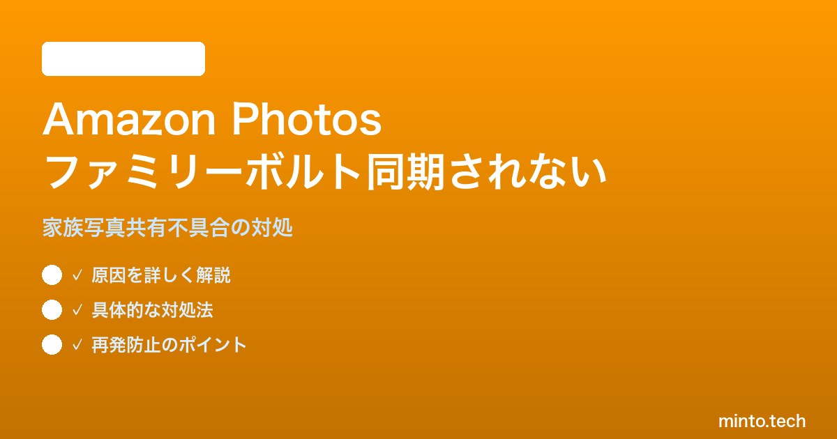 【2026年最新版】Amazon Photos「ファミリーボルト」で家族の写真が同期されない対処法【完全ガイド】