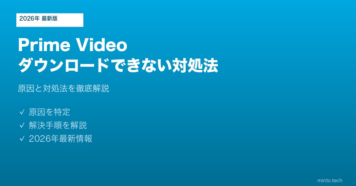 Home / Amazon / 【2026年最新版】Amazon Prime Videoのダウンロードができない・再生できない原因と対処法【完全ガイド】