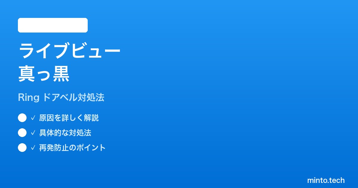 Ringビデオドアベルのライブビュー黒画面問題は、Wi-Fi信号強度の不足・赤外線LED(ナイトビジョン)の問題・アプリのキャッシュ破損・Ring Always Onの設定など、複数の原因によって起きます。本記事では症状別に原因を特定し、効果的な解決策を段階的に解説します。