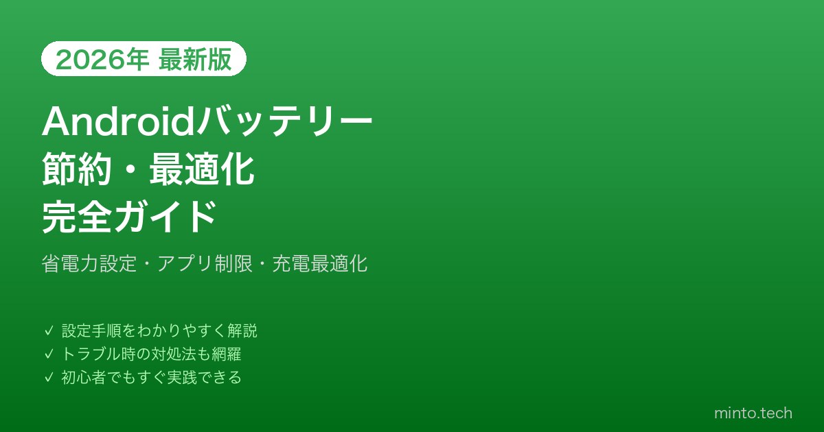 【2026年最新版】Androidバッテリー節約・最適化設定完全ガイド【長持ちの秘訣】