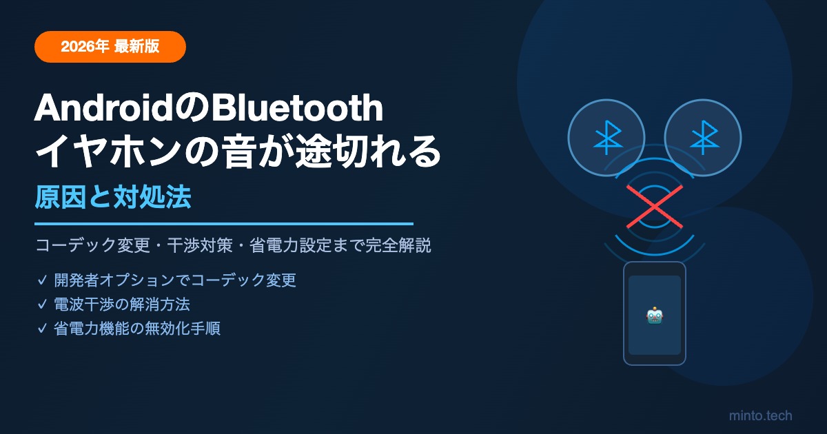特に開発者向けオプションでのコーデック変更は効果が高く、多くのユーザーがこれで解決しています。ぜひ試してみてください。他のAndroidトラブルについてもminto.techで詳しく解説しています。