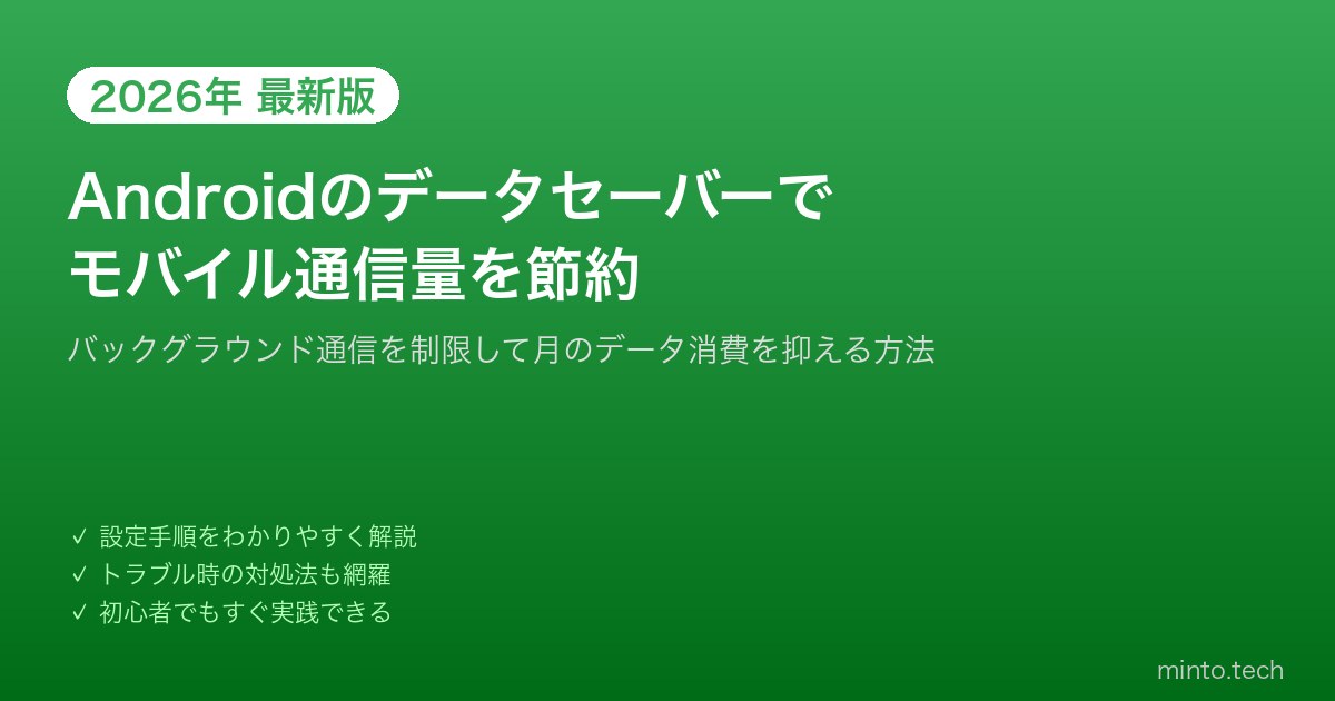 Home / Google / Android / 【2026年最新版】Androidのデータセーバーを設定してモバイル通信量を節約する方法【完全ガイド】