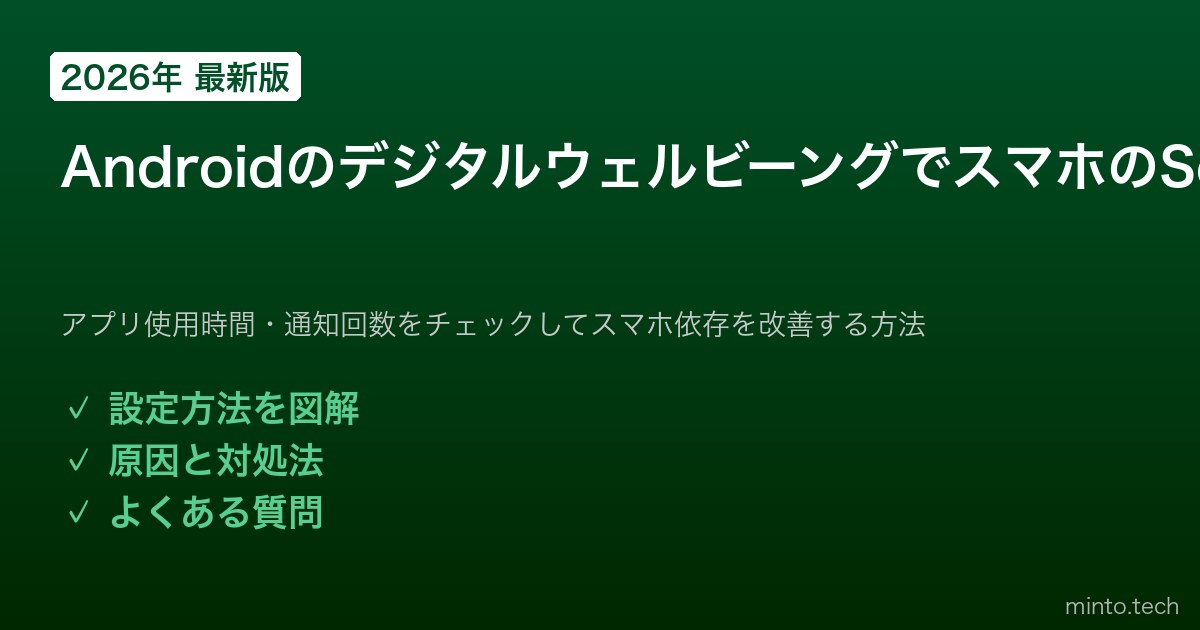 Home / Google / Android / 【2026年最新版】AndroidのデジタルウェルビーングでスマホのScreen Timeを管理する方法【完全ガイド】
