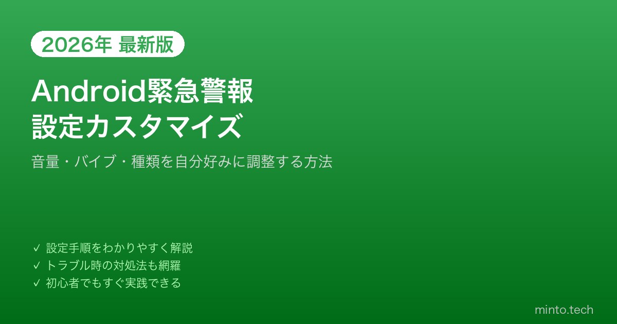 この記事では、Androidの緊急警報・緊急速報メールの仕組みから、受信設定のカスタマイズ方法、音量・バイブレーションの調整方法まで詳しく解説します。安全を保ちながら自分のライフスタイルに合った設定を見つけましょう。