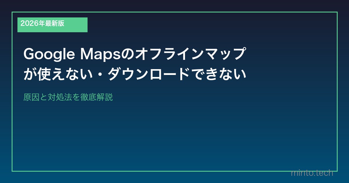 Google Mapsのオフラインマップが使えない場合は、①オフラインマップの有効期限確認 → ②ストレージ容量確認 → ③再ダウンロード → ④キャッシュクリアの順で対処しましょう。旅行前にはWi-Fi環境でマップを更新しておくことをおすすめします。