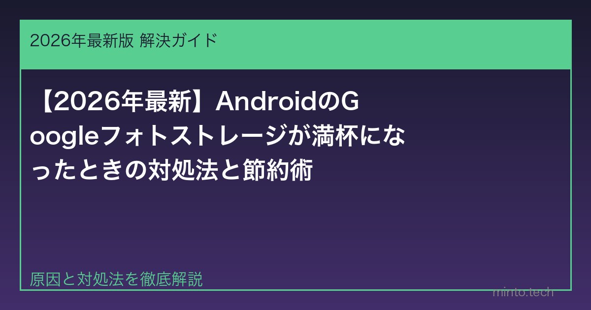 Home / Google / Android / 【2026年最新】AndroidのGoogleフォトストレージが満杯になったときの対処法と節約術