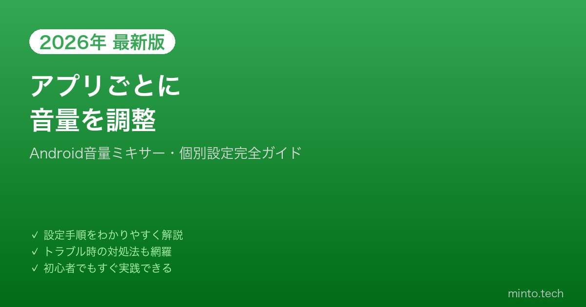 Androidではアプリごとの音量設定が可能で、Android 12以降では標準の音量ミキサーから簡単に操作できます。
