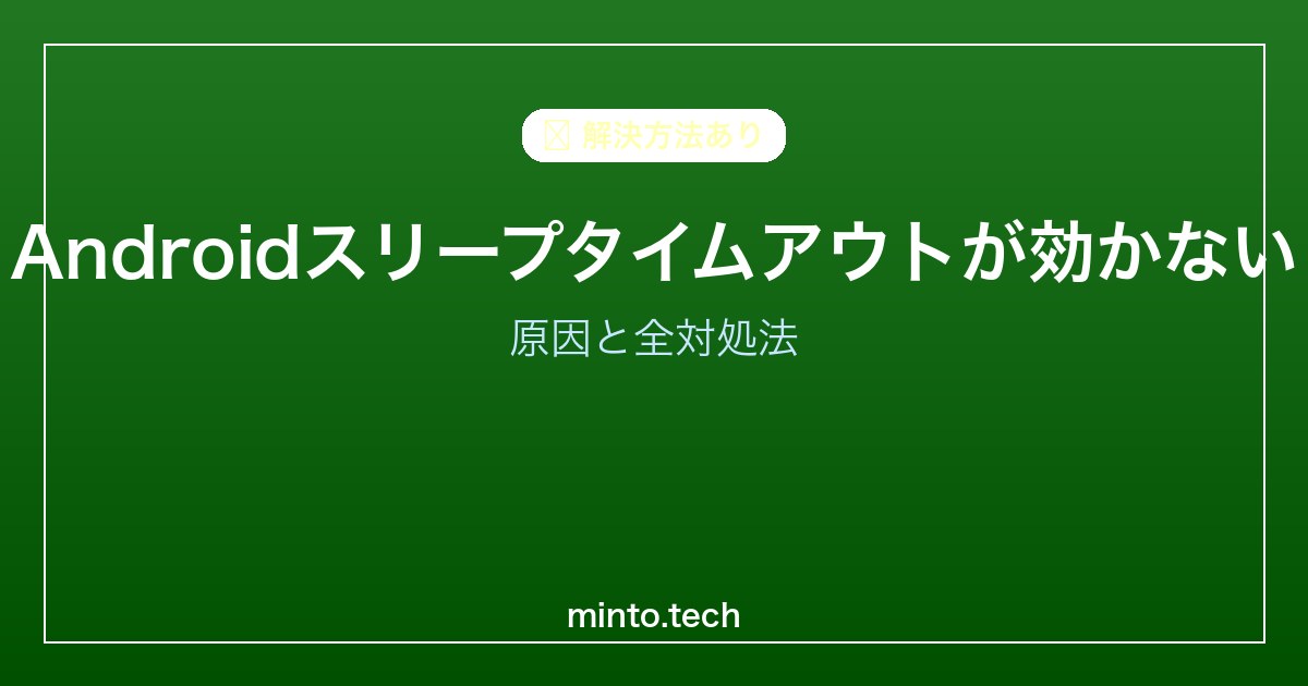Androidスマートフォンを設定した時間が経過しても画面が消えない、逆にすぐに消えてしまう——こうした問題は省電力設定やアプリの常時起動設定が原因です。この記事では、Androidのスリープタイムアウト問題の原因とすべての対処法を解説します。
