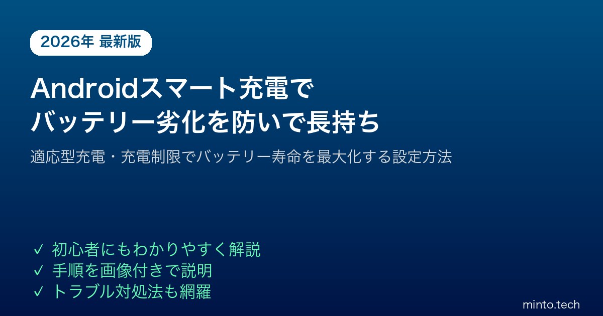 【2026年最新版】Androidのスマート充電・適応型充電でバッテリーを長持ちさせる設定方法【完全ガイド】