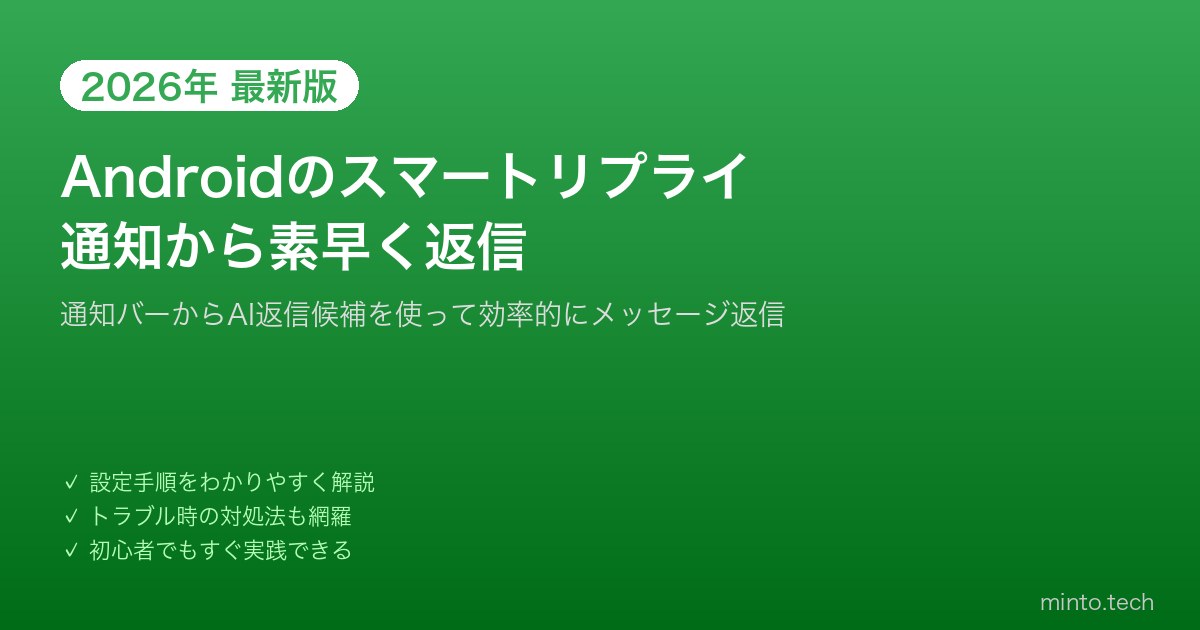 この機能を使えば、通知を展開するだけでその場で返信でき、アプリを起動する必要がありません。さらに AI が返信候補を自動提案してくれる「スマートリプライ」機能も搭載されています。この記事では設定方法・使い方・活用テクニックを徹底解説します。