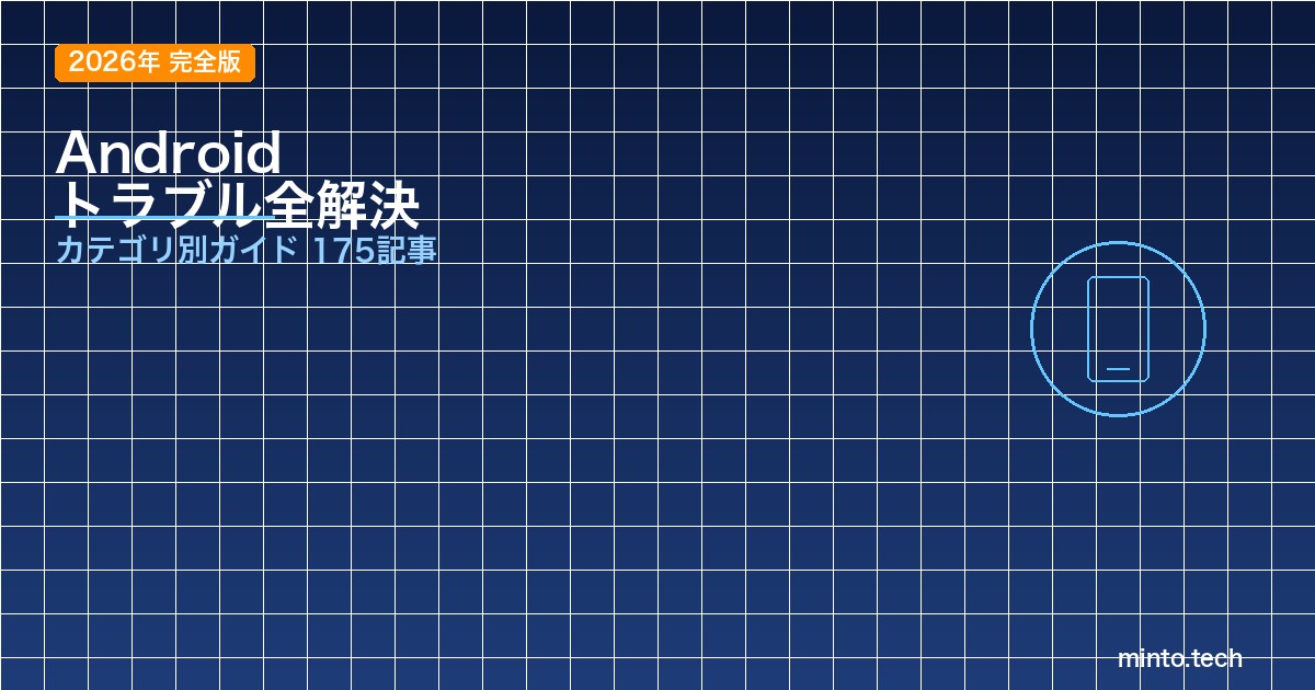 この記事では、minto.techに掲載されている175本以上のAndroid関連記事を、12のサブカテゴリに分類してまとめました。バッテリー問題からWi-Fiトラブル、アプリのクラッシュ、セキュリティ設定まで、Androidユーザーが遭遇するほぼすべてのトラブルに対応する記事が揃っています。