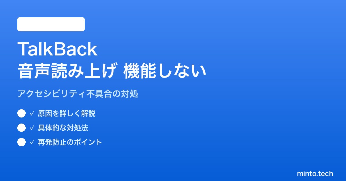 AndroidのTalkBackが機能しない・正しく読み上げない問題は、音量・TTS設定・バッテリー最適化の3点を確認するだけで多くのケースが解決します。