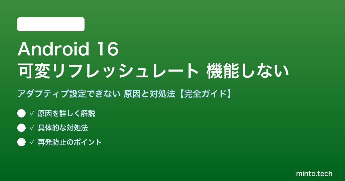 Android 16のアダプティブリフレッシュレートが機能しない原因と対処法をまとめると次の通りです。