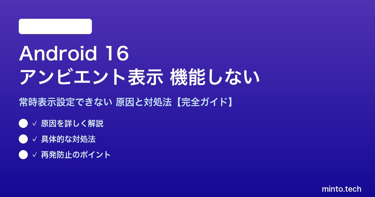 Android 16でアンビエント表示(AOD)が機能しない原因と対処法を解説しました。最後に重要なポイントを整理します。