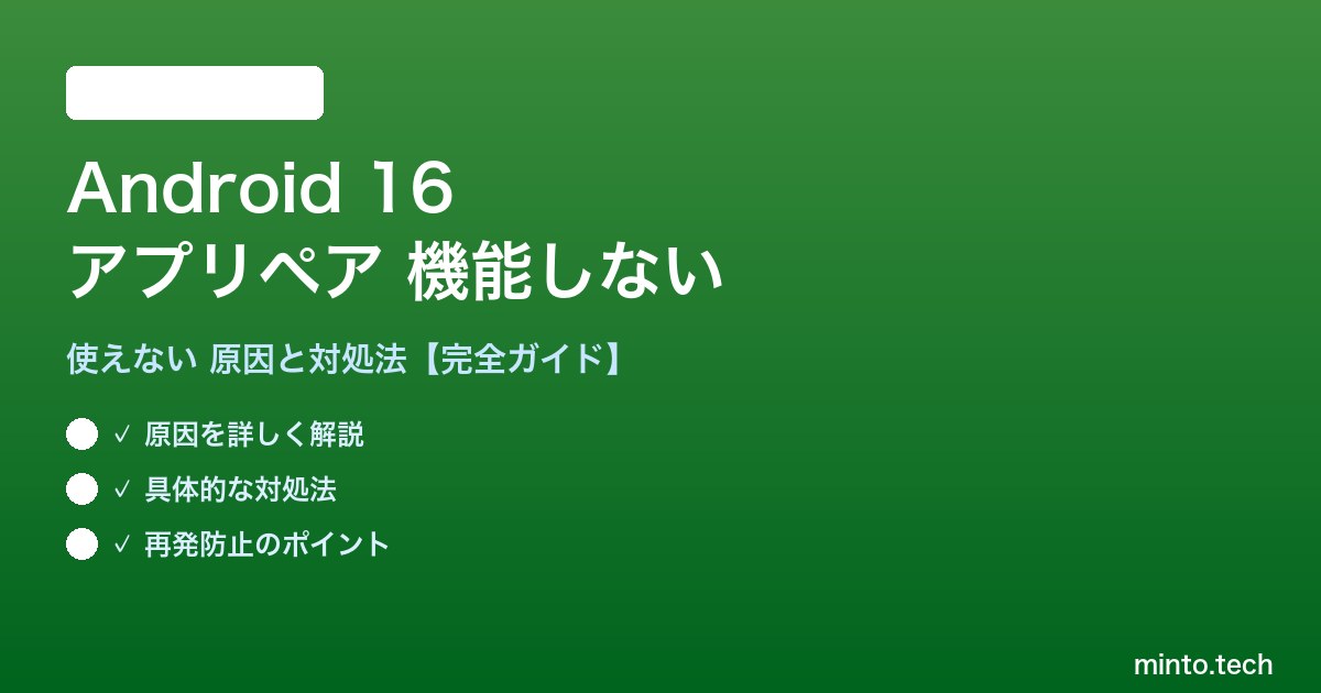 【2026年最新版】Android 16のアプリペアが機能しない・使えない原因と対処法【完全ガイド】