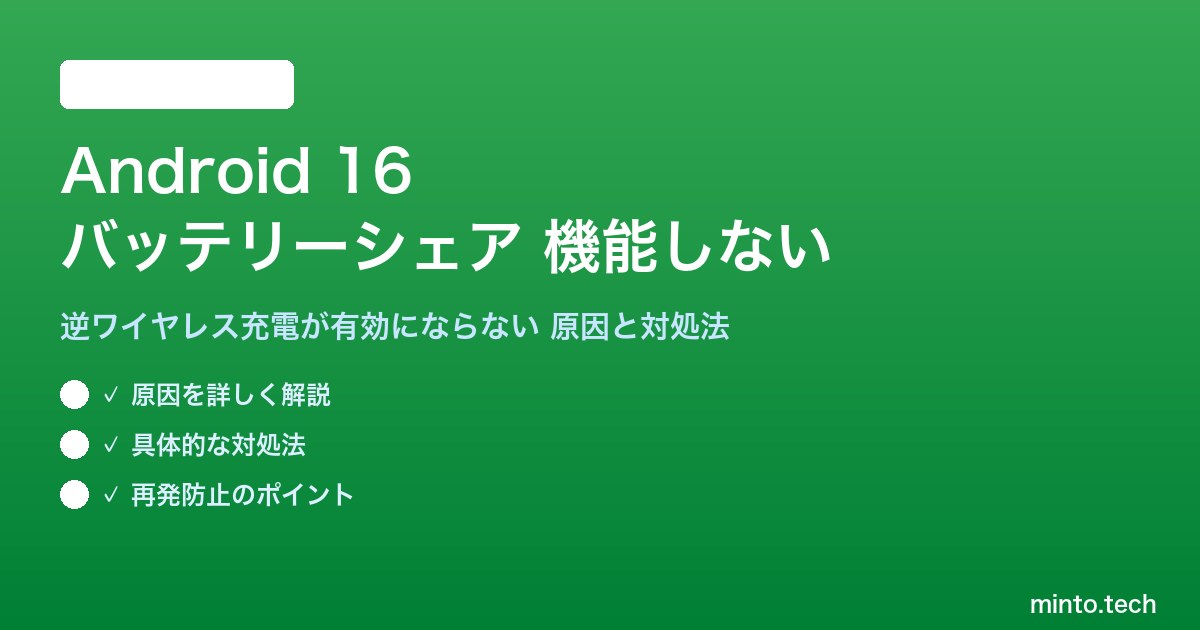 - Android 16でバッテリーシェアが機能しない主な原因