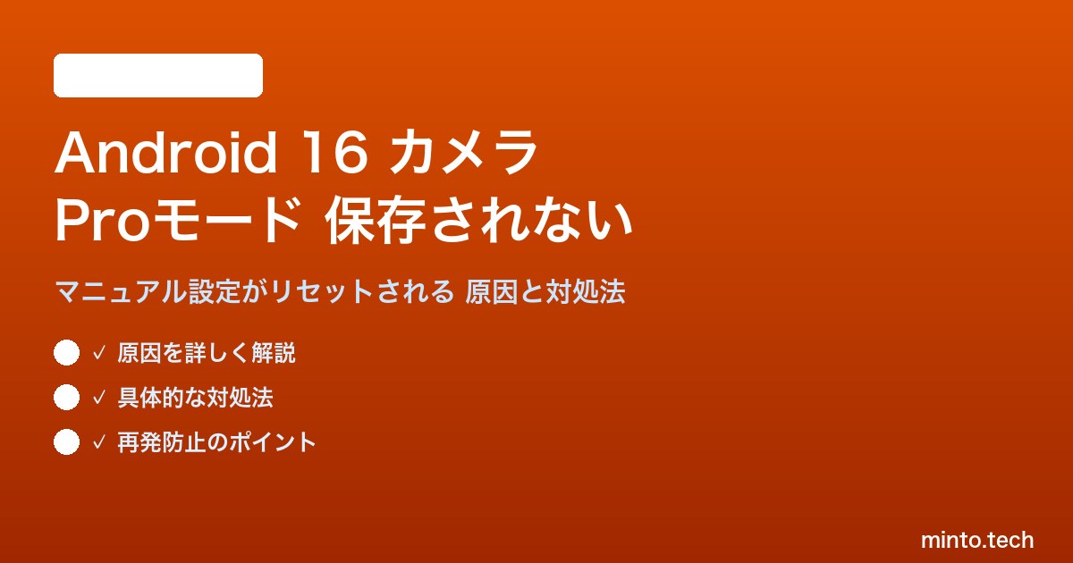 【2026年最新版】Android 16のカメラProモード(マニュアル設定)で撮影した写真が保存されない・設定がリセットされる原因と対処法【完全ガイド】