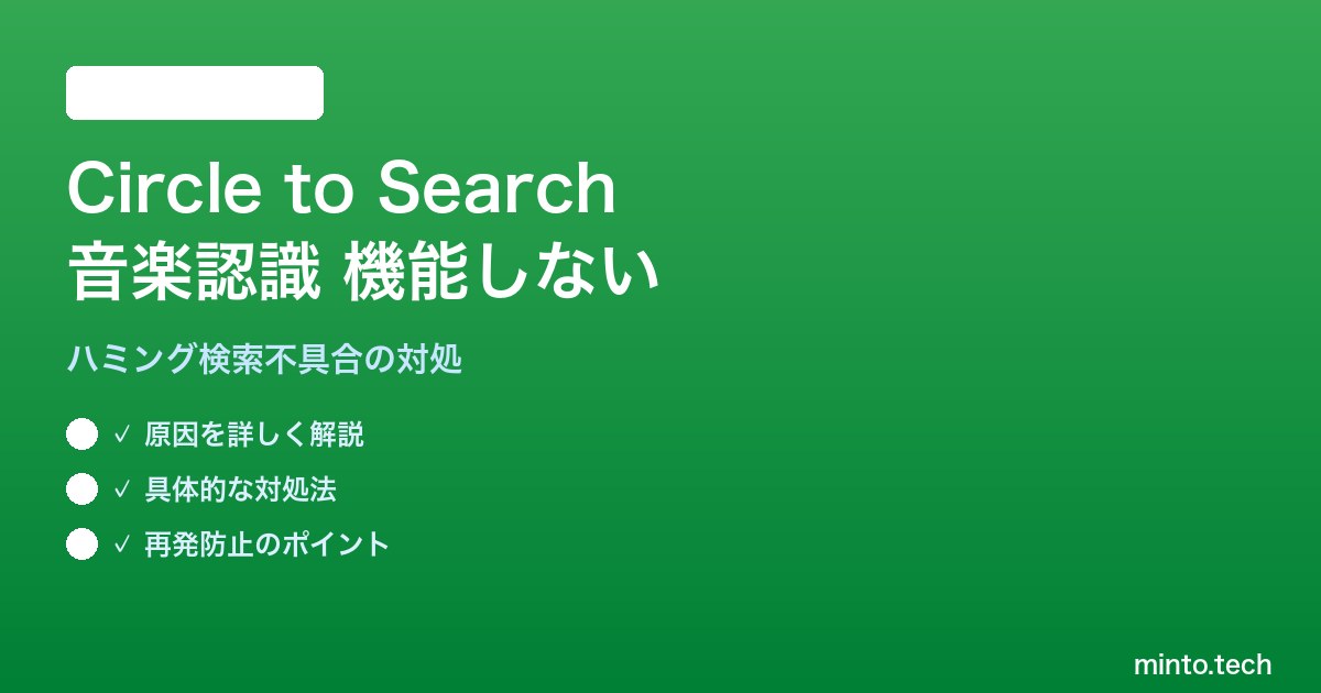 「カフェで流れている曲の名前を知りたくて、Circle to Searchで音楽認識を試したのに反応しない」「ハミング検索をタップしても『識別できませんでした』と表示され続ける」こうしたCircle to Searchの音楽認識(ハミング検索)のトラブルに悩まされている方は少なくありません。Pixel 8以降やGalaxy S24以降で利用できるこの機能は、画面を長押しして丸で囲むだけで画像や文字の検索ができる革命的な検索体験ですが、「音楽認識」という隠れた便利機能に関しては、対応機種や権限の要件がシビアで、うまく動かない条件が揃いやすいという弱点があります。