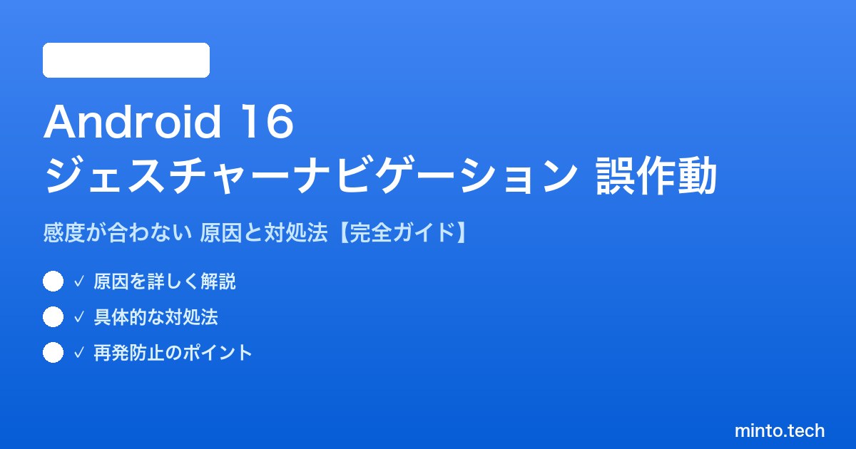 まずは「感度設定の調整」から試して、それでも改善しない場合はケース・アプリとの相性を確認してみてください。それでも解消しない場合は、3ボタンナビゲーションへの切り替えが最も確実な解決策です。快適なAndroid 16ライフを楽しんでください!