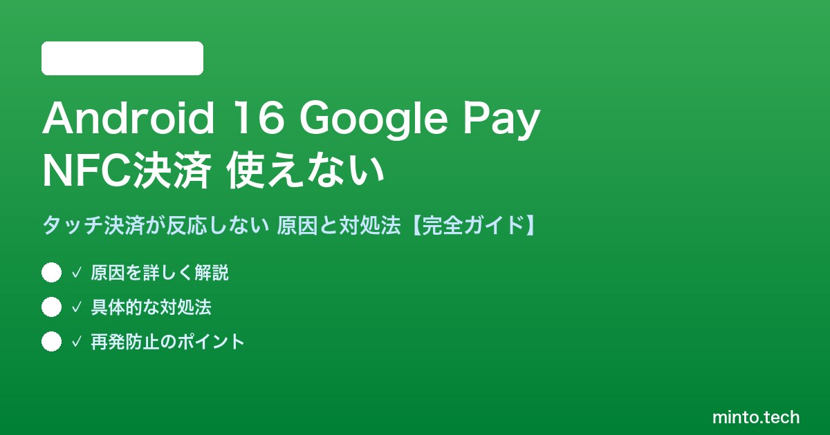 Android 16でGoogle PayのNFCタッチ決済が使えない・反応しない場合の主な原因と対処法をまとめます。