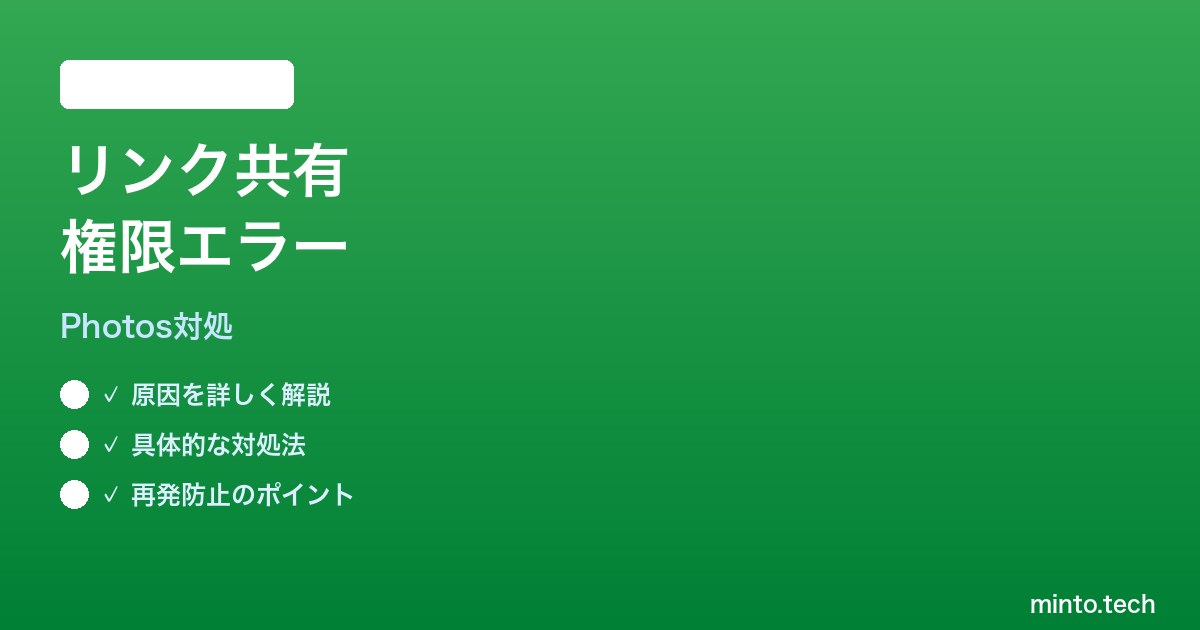 Googleフォトのリンク共有エラーは、組織アカウントの制限・所有者権限・共有設定・キャッシュ・トークン破損の5つの要因に集約されます。本記事の手順を順番に試していけば、ほとんどのケースで権限エラーは解消できます。