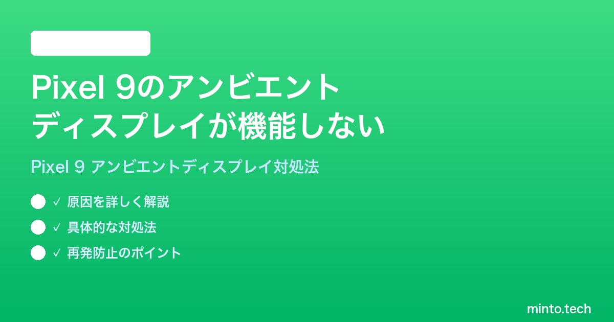 Google Pixel 9のアンビエントディスプレイ(Always On Display)が突然機能しなくなった、または有効にしても表示されない——そんな状況に直面していませんか。アンビエントディスプレイは画面消灯中でも時刻・通知・Now Playingなどの情報を常時表示する機能ですが、設定や省電力モードの影響で意図せず無効化されてしまうことがあります。