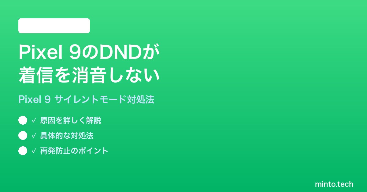 Google Pixel 9でサイレントモード(DND)が着信を消音しない場合の対処法を解説しました。主な原因と対処法をまとめます。