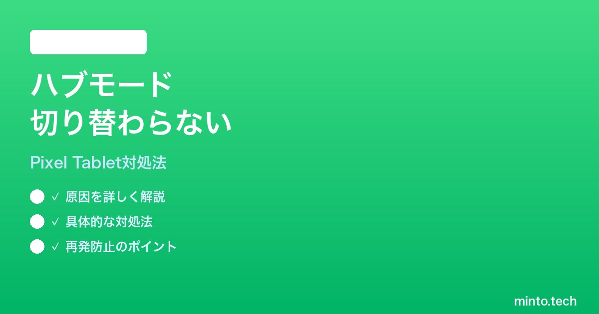 Google Pixel TabletがドックのUSB-Cに置いてもハブモードに切り替わらない問題の主な原因と解決策をまとめます。