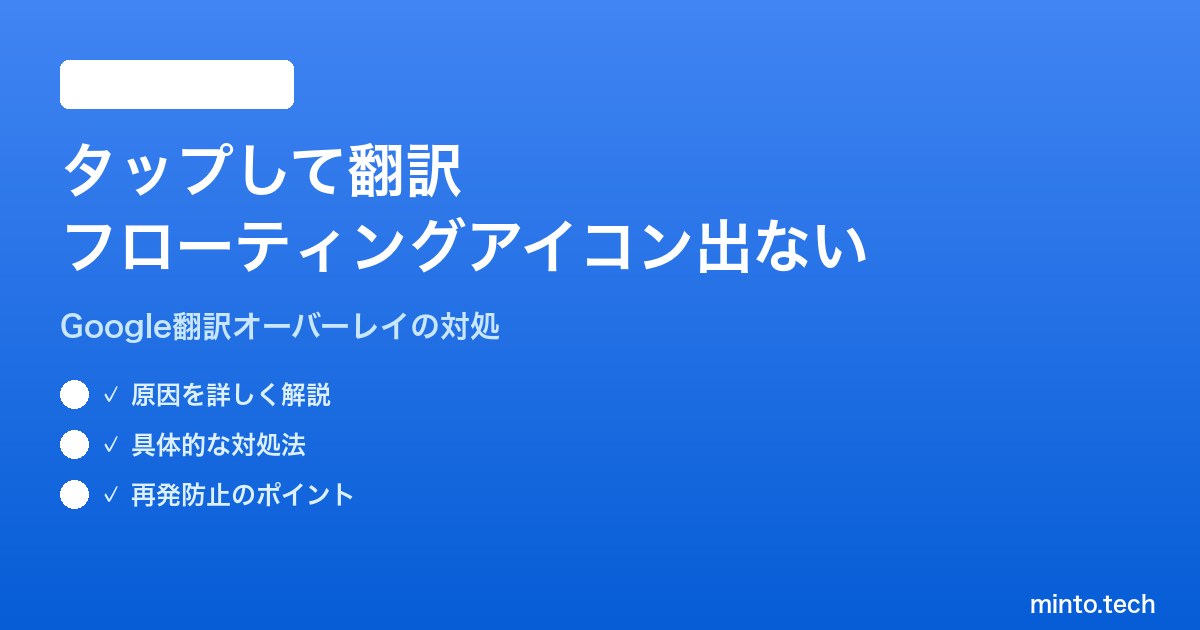 Androidの「タップして翻訳」フローティングアイコンが出ない問題は、一見すると原因不明に思えますが、実際には「アプリ内設定」「重ね表示権限」「通知権限」「バッテリー最適化」「メーカー固有の制限」の5つのどこかに確実に原因があります。上から順にチェックしていけば、多くの場合30分以内に解決できます。