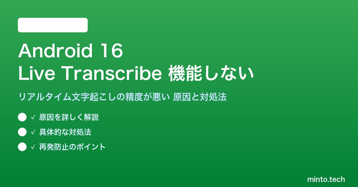 「Android 16にしてからLive Transcribeが起動しない」「文字起こしが途中で止まる」「日本語の認識精度が低くて使い物にならない」「マイクが反応しない」——こうした問題でお困りの方は多いでしょう。