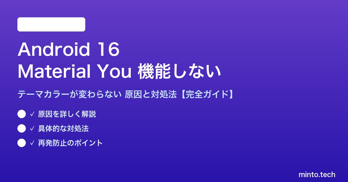 Android 16のMaterial Youダイナミックカラーが機能しない問題は、いくつかの原因が考えられます。主なポイントをまとめます: