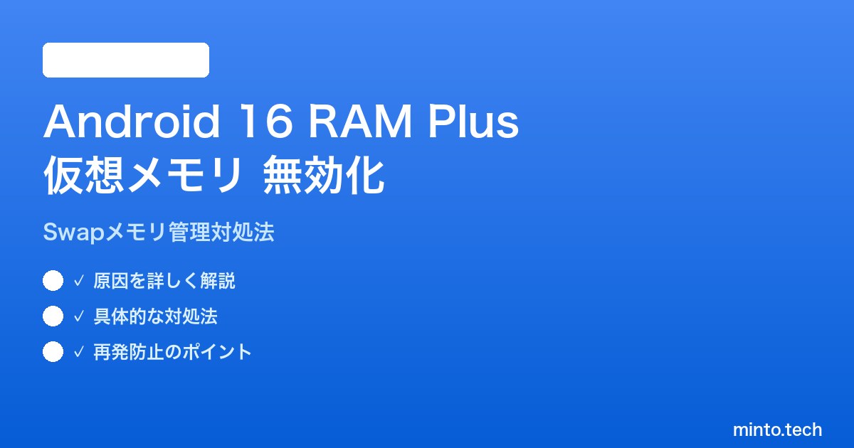 Android 16でRAM Plusが無効化される主な原因は、OSのメモリ管理ポリシーの変更、OTAアップデート時の設定リセット、ストレージ容量不足、セキュリティパッチとの競合の4点です。