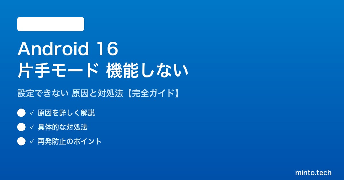 本記事では、Android 16における片手モードが機能しない・有効にできない問題の原因と対処法を完全網羅します。Pixel・Samsung・Xiaomiそれぞれの設定方法、ジェスチャー操作のコツ、よくあるトラブルの解決策まで、順を追って丁寧に解説します。