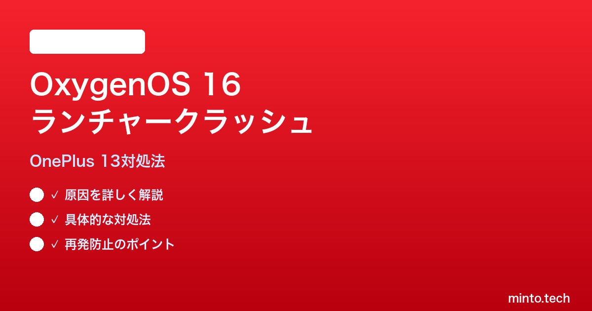 この記事では、OnePlus 13(OxygenOS 16 / Android 16環境)でランチャーがクラッシュする原因を徹底解説し、キャッシュクリアから代替ランチャーの導入、システムリセットまで、段階的な対処法を詳しく紹介します。